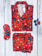 Pajama and shorts set- Includes Pajama, Shorts, Shirt and an Eye Mask.