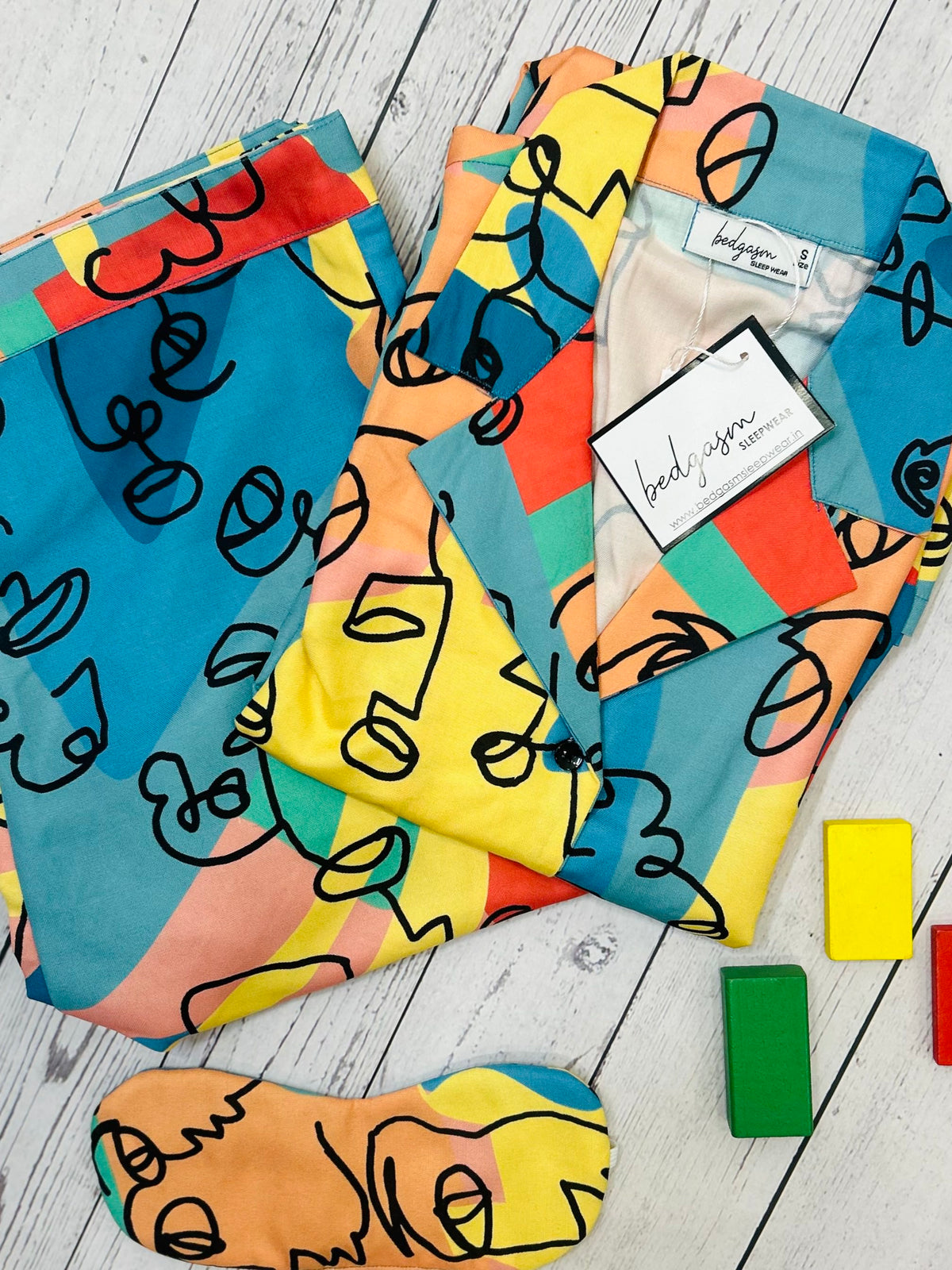 Slip into the vibrant world of dreams with the 'Abstract Multi Nightwear Set' from Bedgasm Sleepwear, a fusion of art and comfort for your nighttime attire. This sleepwear set is a canvas of bold abstract patterns, with a spectrum of colors that dance across the fabric in playful harmony. This lively nightwear set includes a full-sleeved, button-up top and matching trousers, both splashed with an array of shapes and shades that capture the essence of modern art. The design not only makes a fashion statement but also promises a relaxing fit for a good night's sleep or a chill day at home. Crafted from a soft, breathable fabric, the Abstract Multi Nightwear Set is both a visual treat and a haven of comfort. The material is gentle on the skin, ensuring that nothing interrupts your beauty rest. The elastic waistband on the pants offers a snug, yet comfortable fit, ideal for all-night wear or lounging. Turn your sleepwear into a statement piece with the Abstract Multi Nightwear Set, perfect for those who like their nighttime wardrobe to be as expressive and unique as their daytime style. It's a delightful addition to any sleepwear collection, offering a blend of artistic flair and unmatched comfort.