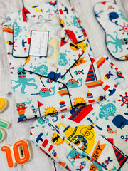 Settle into the "Ahoy Matey Nightwear Set" and let it lull you into dreams of starry skies and distant shores. It's more than a sleepwear ensemble; it's a nightly retreat into the soothing embrace of the sea.