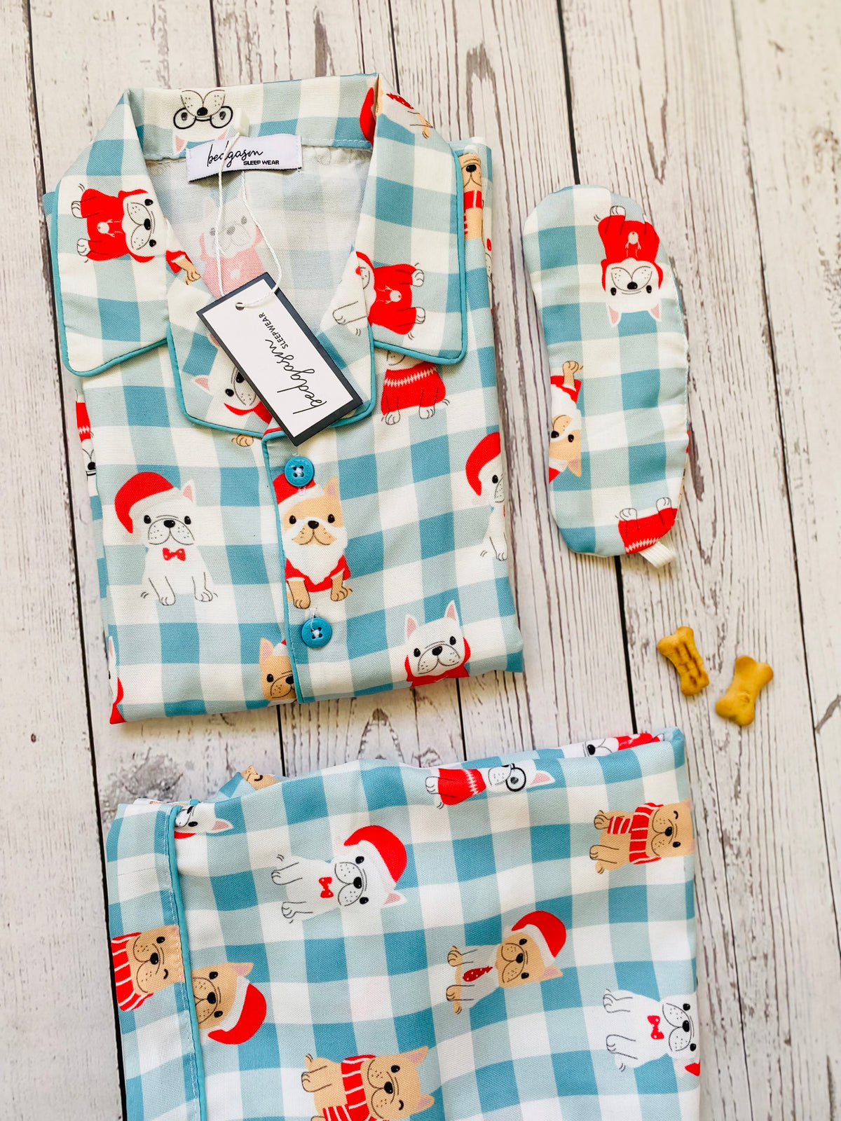 Pajama set- includes Pajama, Shirt, an Eye Mask.