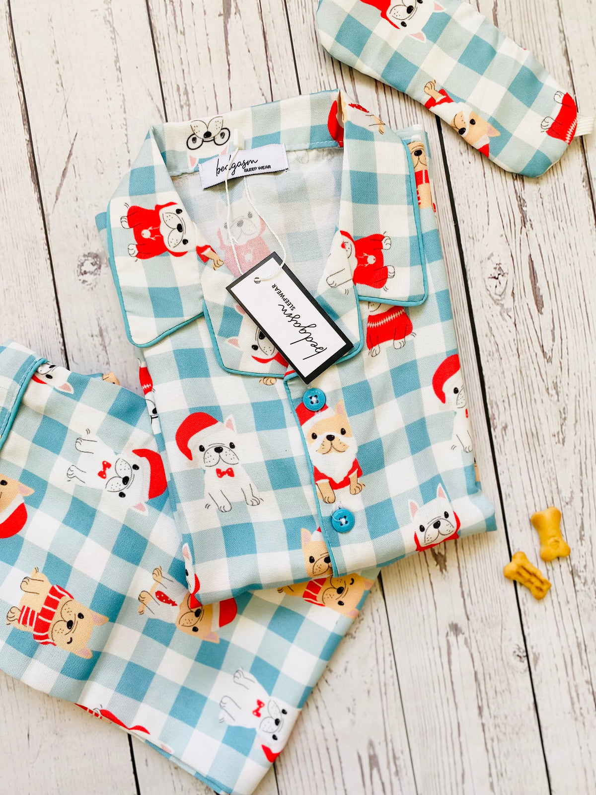 The set's pastel-hued checkered pattern is adorned with playful, cheerful bears, each step in the coordinating slippers echoing with the carefree laughter of childhood memories. The design reflects a story of joyful days and peaceful nights, a reminder of the simple pleasures that are the heart's truest comfort.