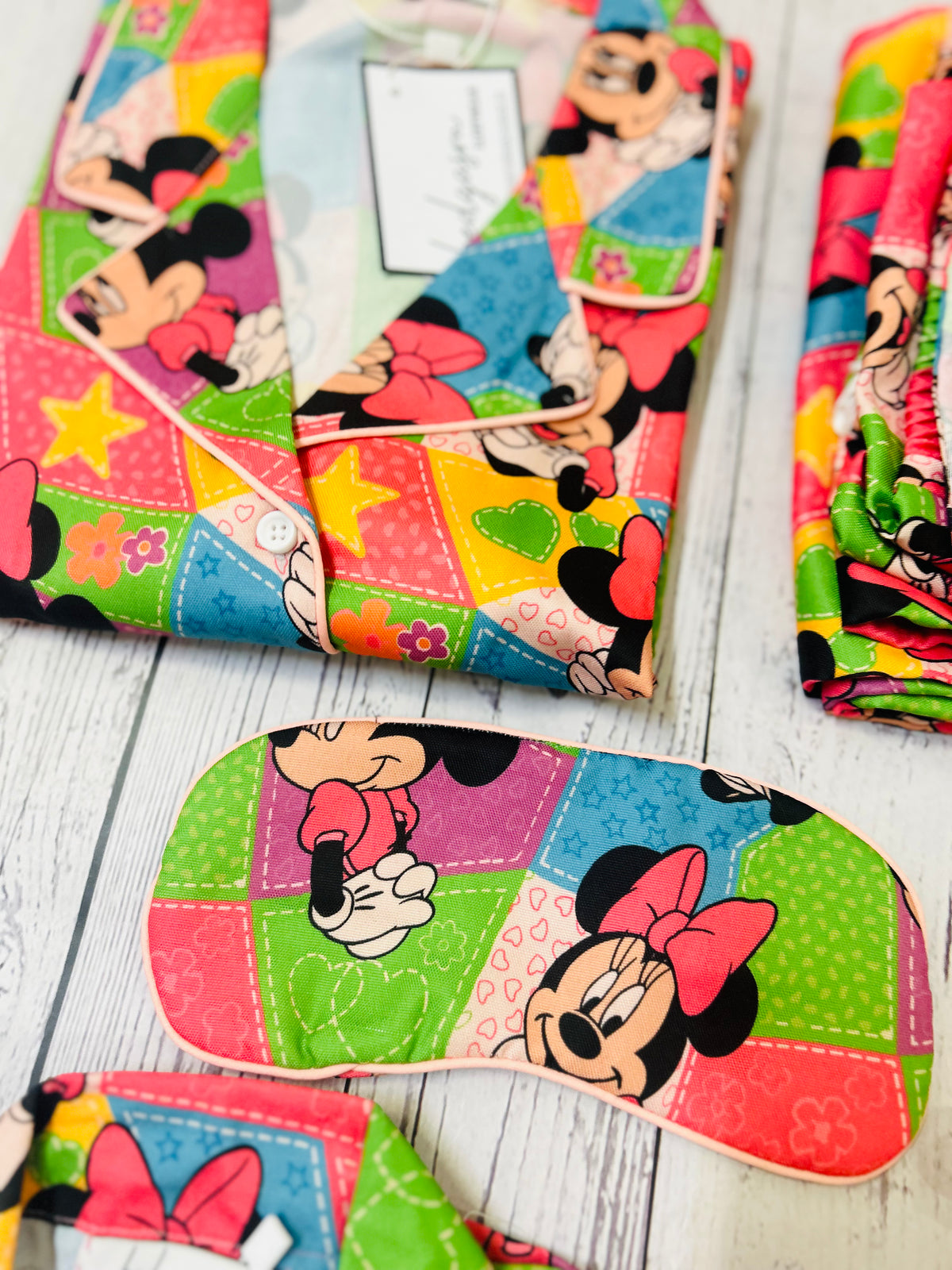 Pajama and shorts set- includes Pajama, Shorts, Shirt and an Eye Mask.
